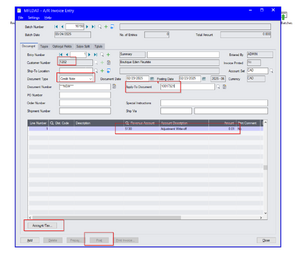 Pour ajuster, on crée un debit ou credit note dans AR invoice entry. (voir image)